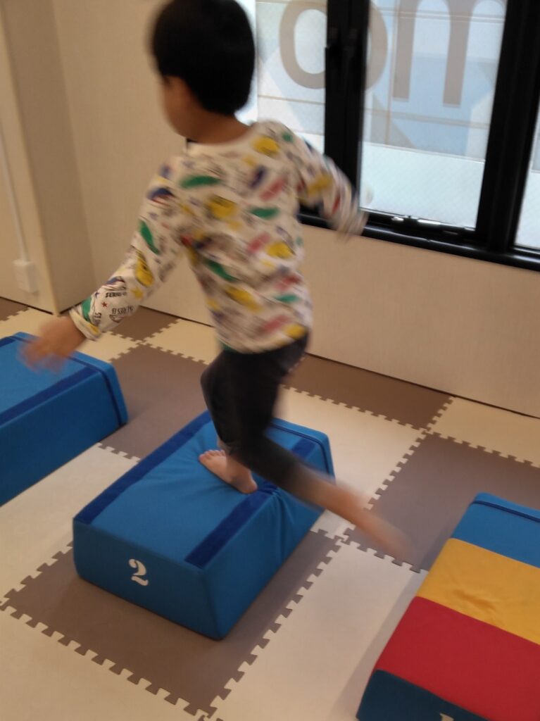 この種目は、跳び箱を1段ずつバラバラに配置しバランス感覚や体幹力、空間認知能力などに効果のある種目になっています。