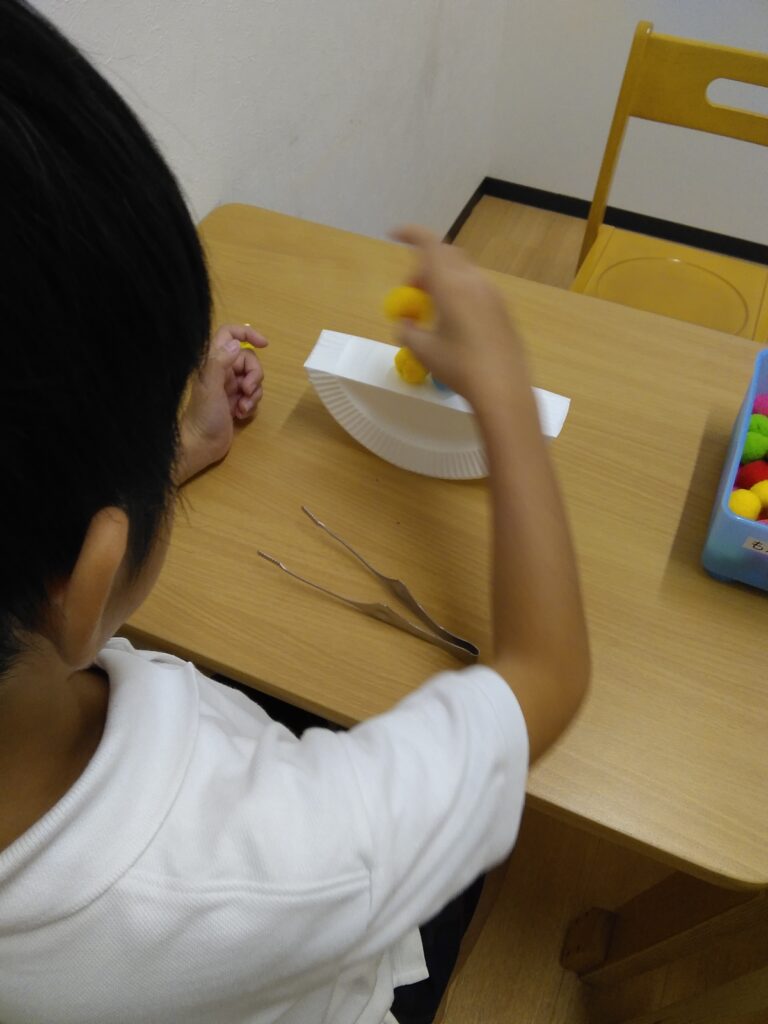 指先を使用したバランスゲームには、手指の巧緻性や指先のコントロール能力の向上などが養われます。不安定な紙皿に置くことで、必要な力を調整することや思考力の向上も期待できます。