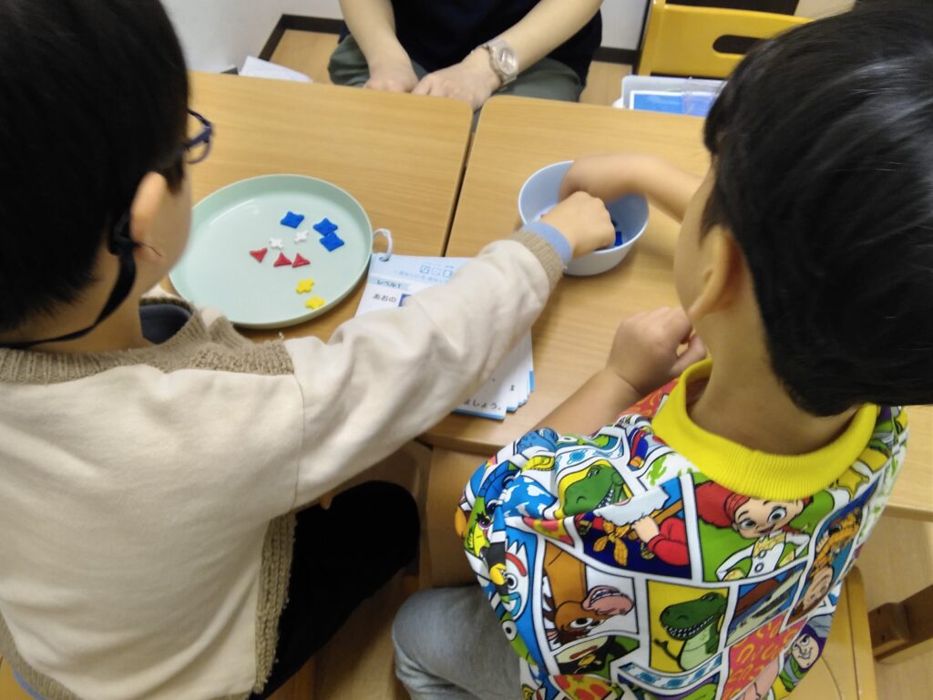 今回は、職員がお題カードを提示してお題カードに書かれているパーツを同じ数集める課題になります。