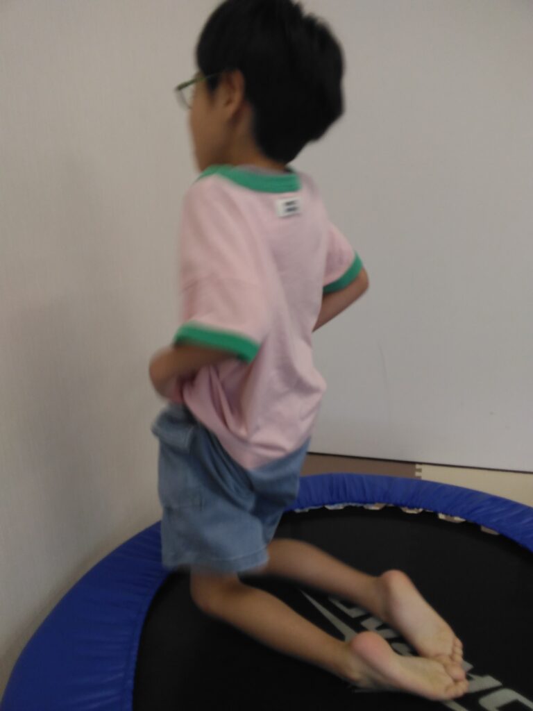 トランポリンは特に固有感覚、前庭感覚を刺激します。