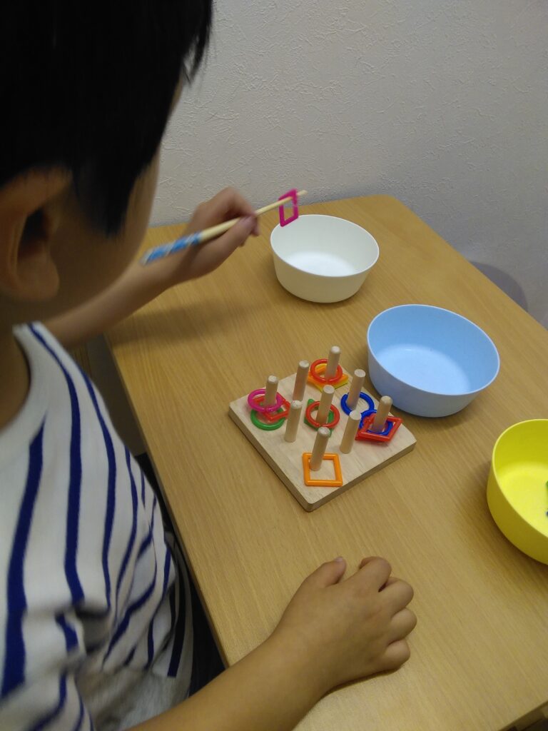 この課題では指示通りに取り組むこと、箸の上達にむけた指先の力を鍛えることを目的として行いました。