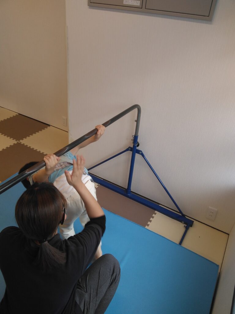 また、勢いのない状態で、重心移動による回転も身につくので鉄棒で回転する際の体の使い方が理解できます。