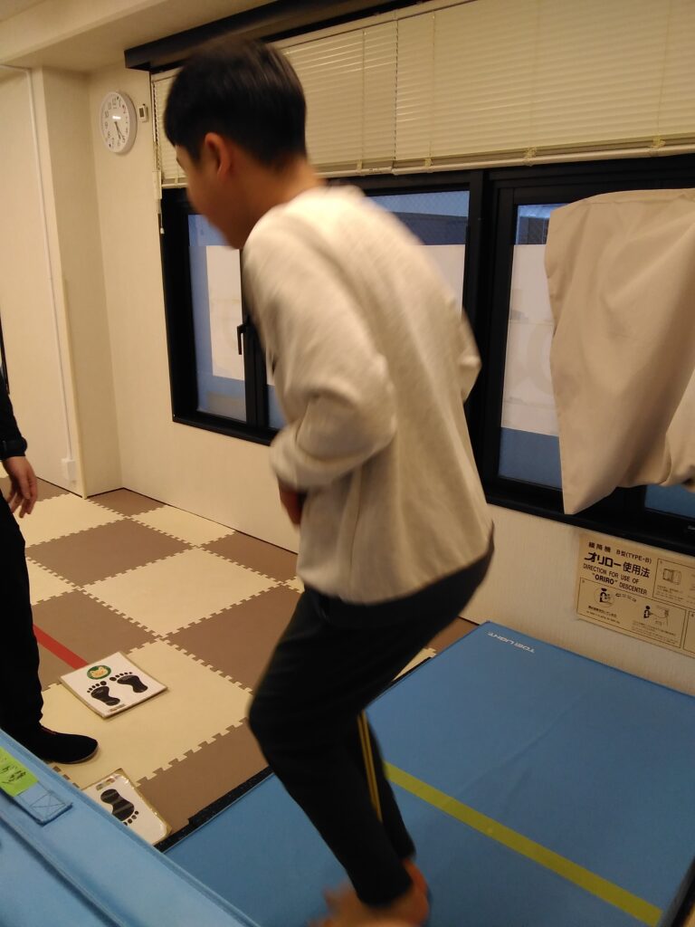 ホッピングというと室外で行うものをイメージされるかと思いますが、当施設では室内で行えるウレタンの物を使用しています。