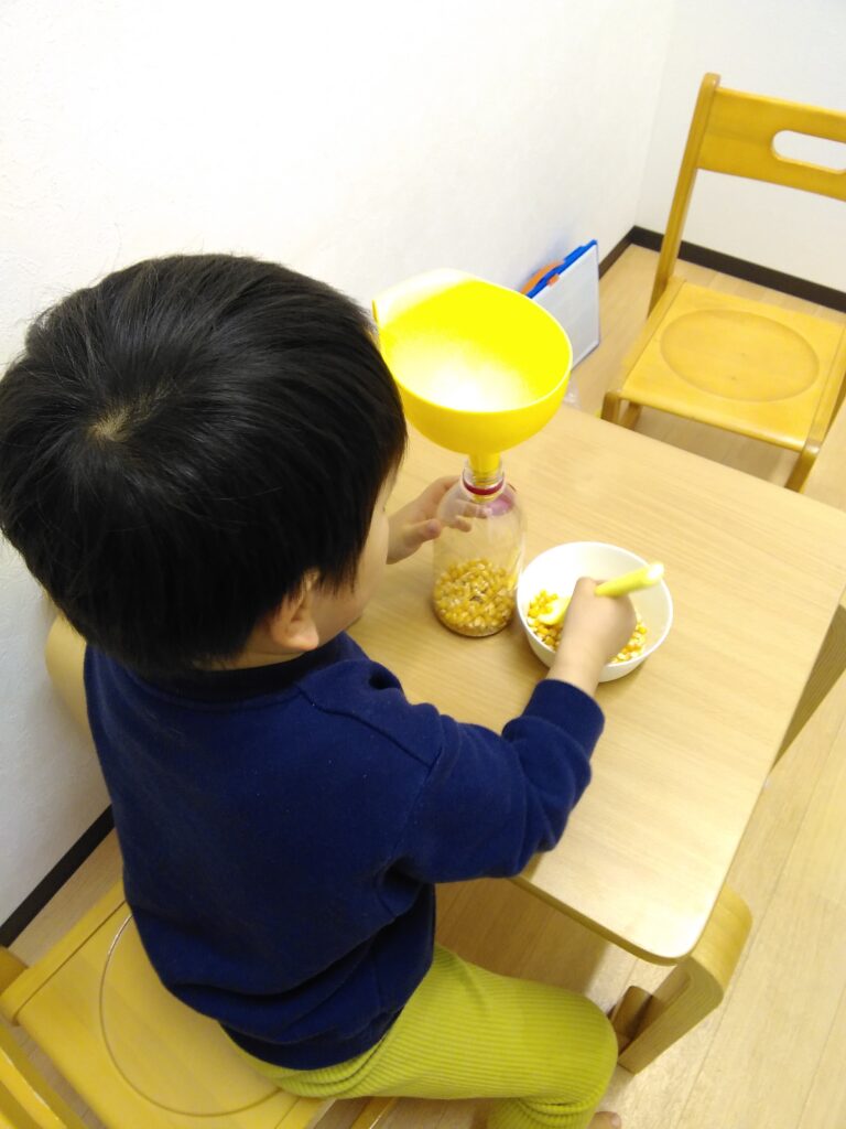 スプーン課題に取り組んでいる様子です。
